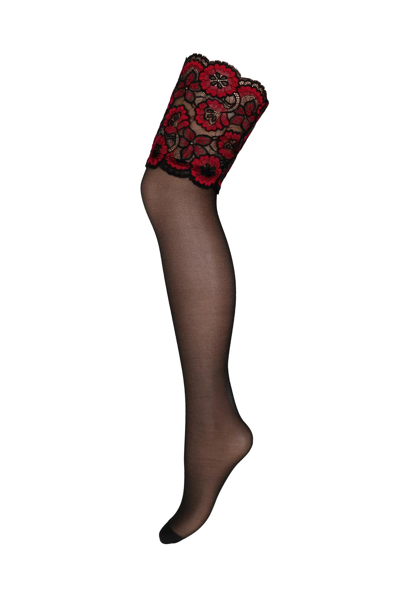 Transform your lingerie sets with the After Hours Hold Up. Indulge in classic styling with this pair of sensational hold ups. Soft to the touch and featuring intricate deep lace tops, these hold ups complete any lingerie look. With silicone strips to keep these sheer 15 denier hold ups in place and a reinforced toe you will never have to worry about any lingerie mishaps in the sultry hold ups.