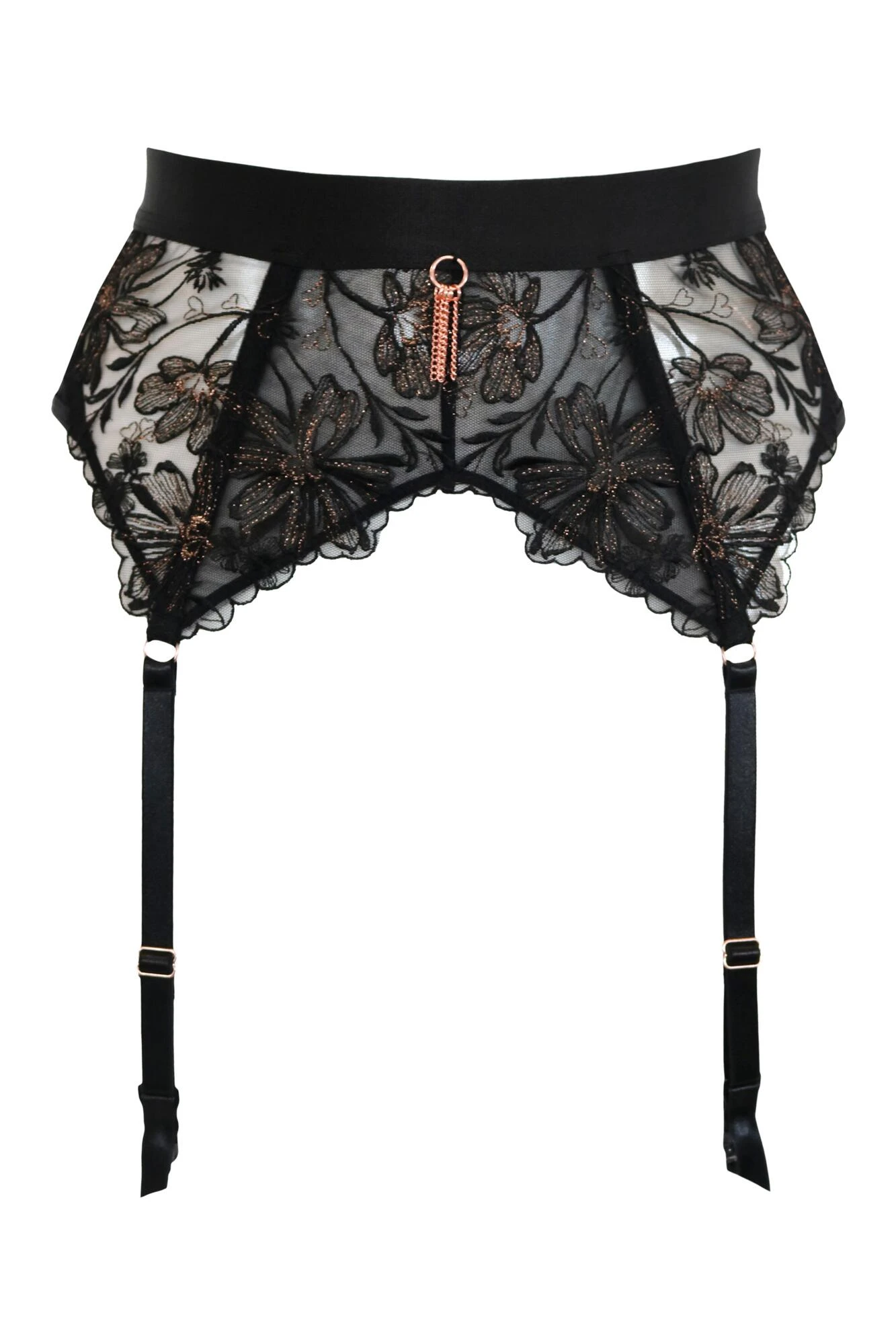 Take your lingerie look to the next level with the Constance Suspender. Decorated with beautiful, embroidered panels and satin finish waistband this irresistibly fancy suspender will compliment all your lingerie looks. Wear this style with luxe rose gold hardware how you want with adjustable suspender straps and hook-and-eye closure. Add a finishing touch to your lingerie when you pair the Constance Suspender with your choice of knickers and bra from the Constance collection.