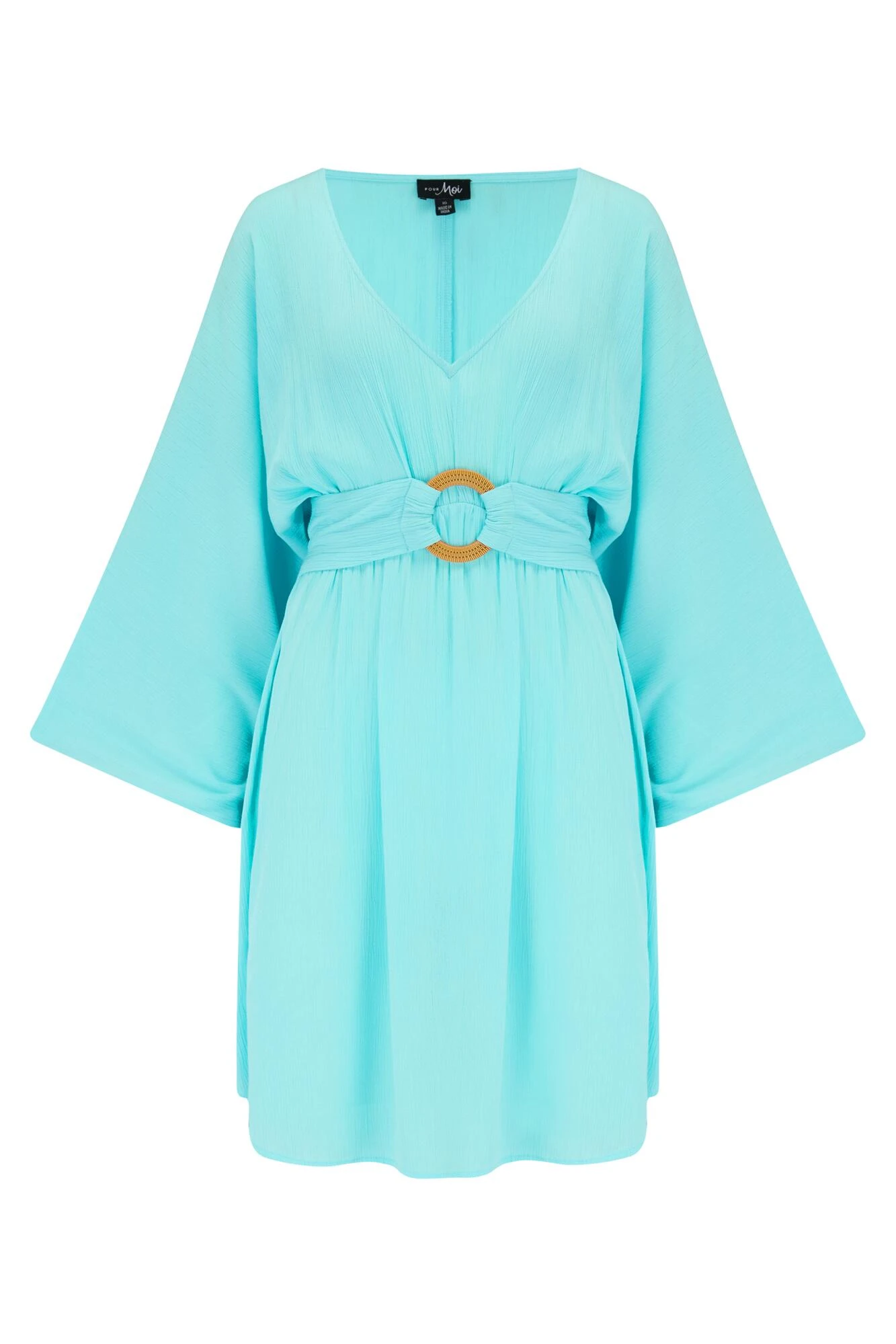 Ideal for those days spent on the beach or by the pool, this beautiful cover up is made from a flattering crinkle fabric for a relaxed look. Feel confident, comfortable, and stylish on your next getaway in this beach cover up with an elasticated waist and flattering V-neckline. You’ll elevate your beachwear look in this cover up with rattan effect plastic O-ring detailing, and breathable 3/4 length sleeves.