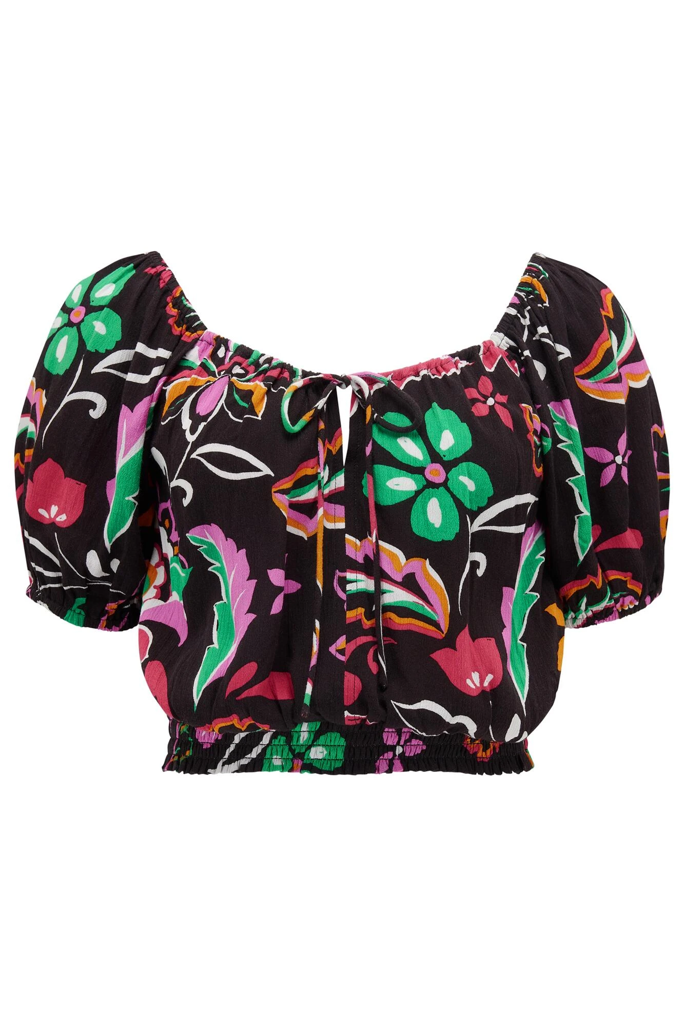 Your newest summer obsession is here! The Crinkle Bardot Smock Tie Top is so cute you’ll want to wear it every day, even when you’re not relaxing on the beach. Made with elasticated, puff sleeves this comfortable and breathable style made from woven viscose can be worn on the shoulder or as a bardot. The shirring channel to the hem is super stylish and flattering. Feel like a total beach babe when you pair the Crinkle Bardot Smock Tie Top with the matching Crinkle Tie Front Beach Shorts.
