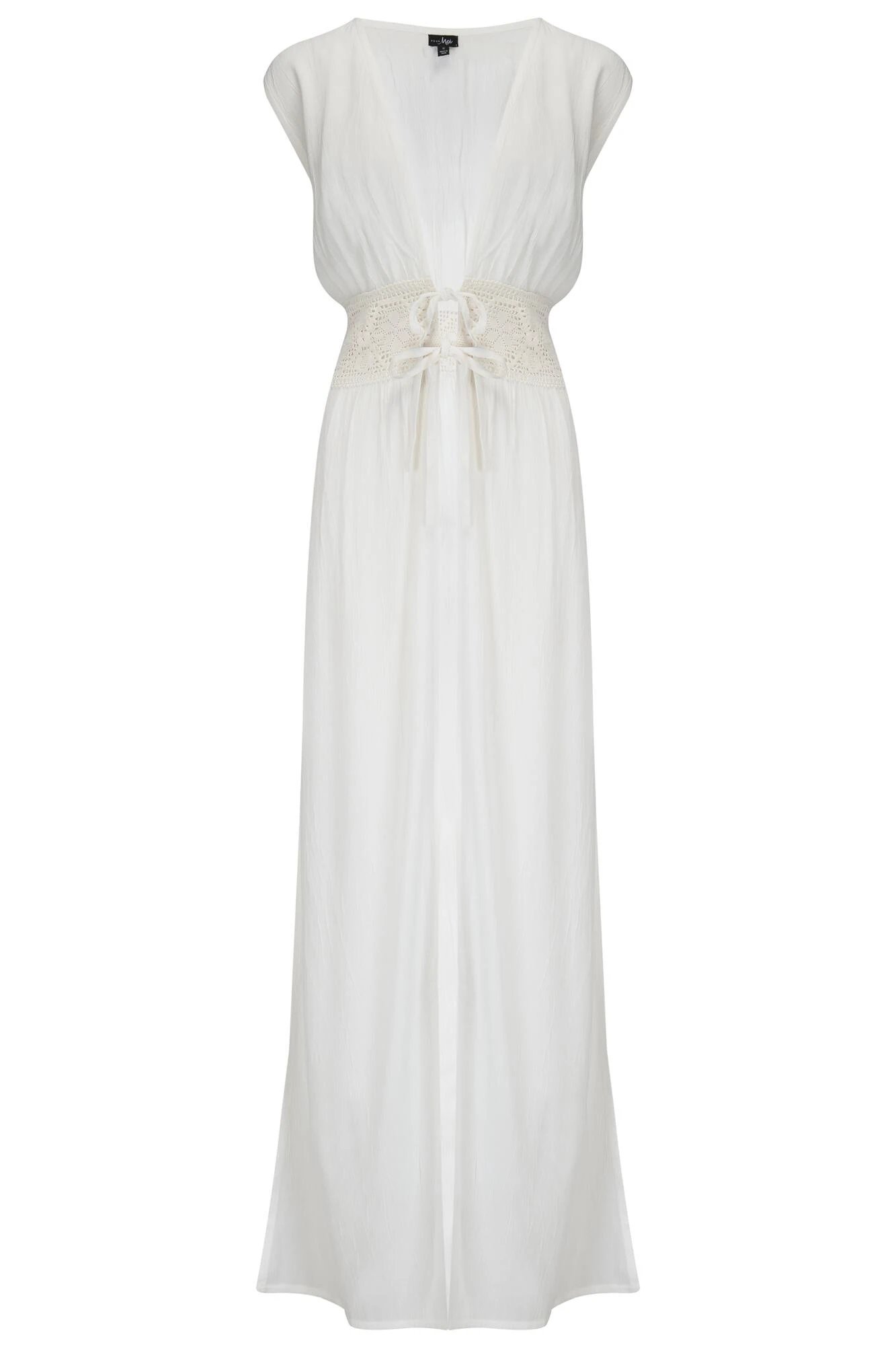 Make the beach your catwalk in the Crochet Sleeveless Maxi Kimono. Made to flatter your figure, this stylish kimono with side splits looks great over your favourite swimwear. Adorned with crochet waist detail to flatter your waist, this sleeveless maxi kimono looks great dressed up with jewellery and heeled sandals or throw it over your swimwear for a more understated look. Stay cool and fabulous all holiday long in breathable fabric, this kimono really has it all!
