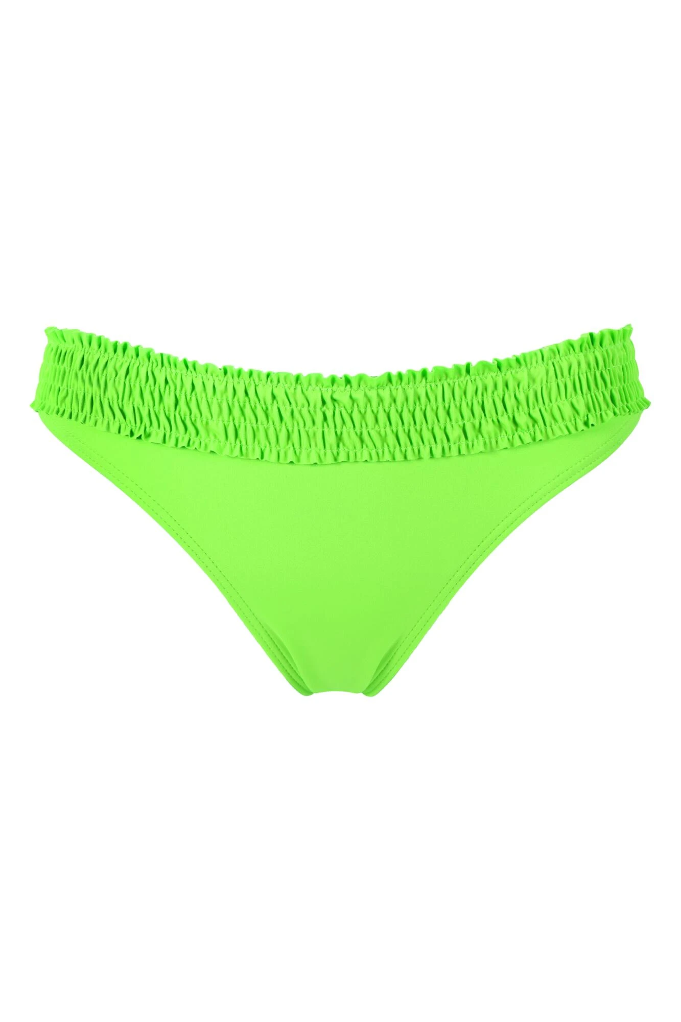 Add a flirty and feminine touch to your swimwear wardrobe with the Free Spirit Frill Waist Brief. This pretty style boasts a classic bikini brief shape, with a shirred fabric waistband to add a cute edge to your summer look. Pair with a Free Spirit Bikini Top and get ready to take on the summer in style. We take the impact that our business has on the planet seriously, that is why the Free Spirit Frill Waist Brief is made from recycled materials.