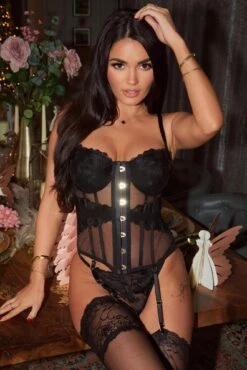 Feel sensational in the India Bold Embroidery Basque. Featuring semi-sheer mesh corsetry panels and beautiful bold embroidery on the cups and waistline to compliment your incredible figure. This basque won’t only make you look good but feel good too. With fully adjustable and removable straps and suspender straps, for ultimate comfort. This style is finished of beautifully with luxe gold hardware. For a match made in lingerie heaven pair with the India Bold Embroidery Thong.