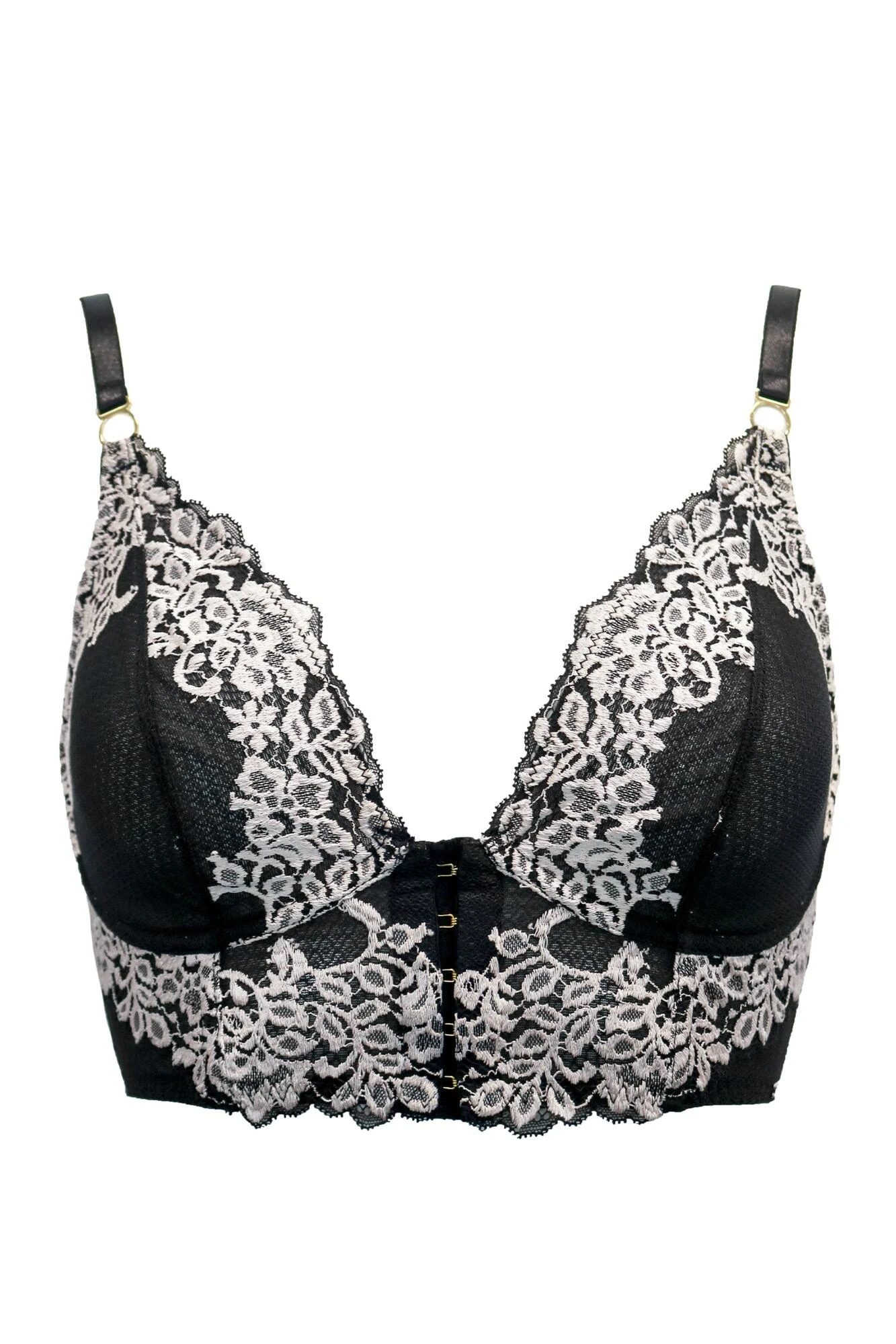 - Front fastening hook and eye details