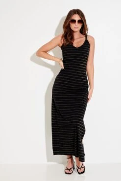 The Jersey Plaited Straps Maxi Dress is our favorite beach dress to get us in the mood for summer. Channel nautical vibes in this sparkle stripe print maxi dress with stylish plaited straps Made in a super soft fabric to keep you looking and feeling cool all summer long. Take this look from the beach to the bar for all day glam!