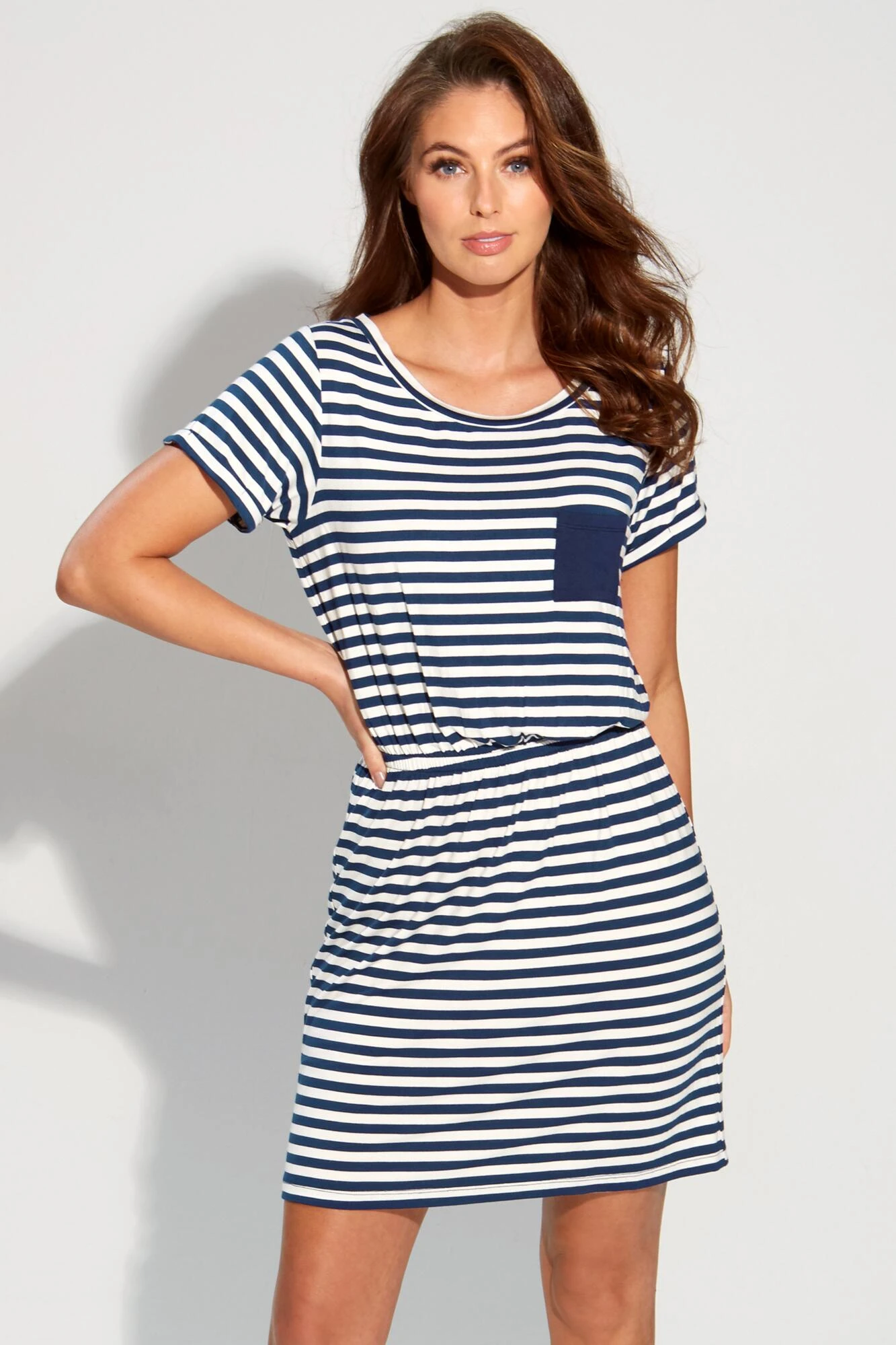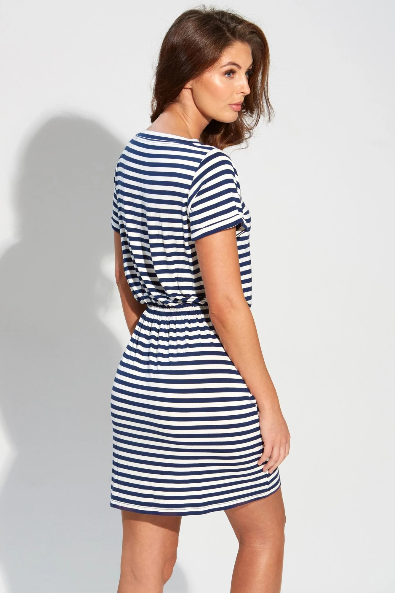 Live in the Jersey Pocket T-Shirt Beach Dress all summer long. Made from soft jersey fabric with a comfortable elasticated waist this striped beach dress is perfect for those relaxing days in the sun. Whether you are lounging by the pool, exploring on holiday, or relaxing in the garden at home, this cute summer dress with a contrasting pocket will look effortlessly stylish.