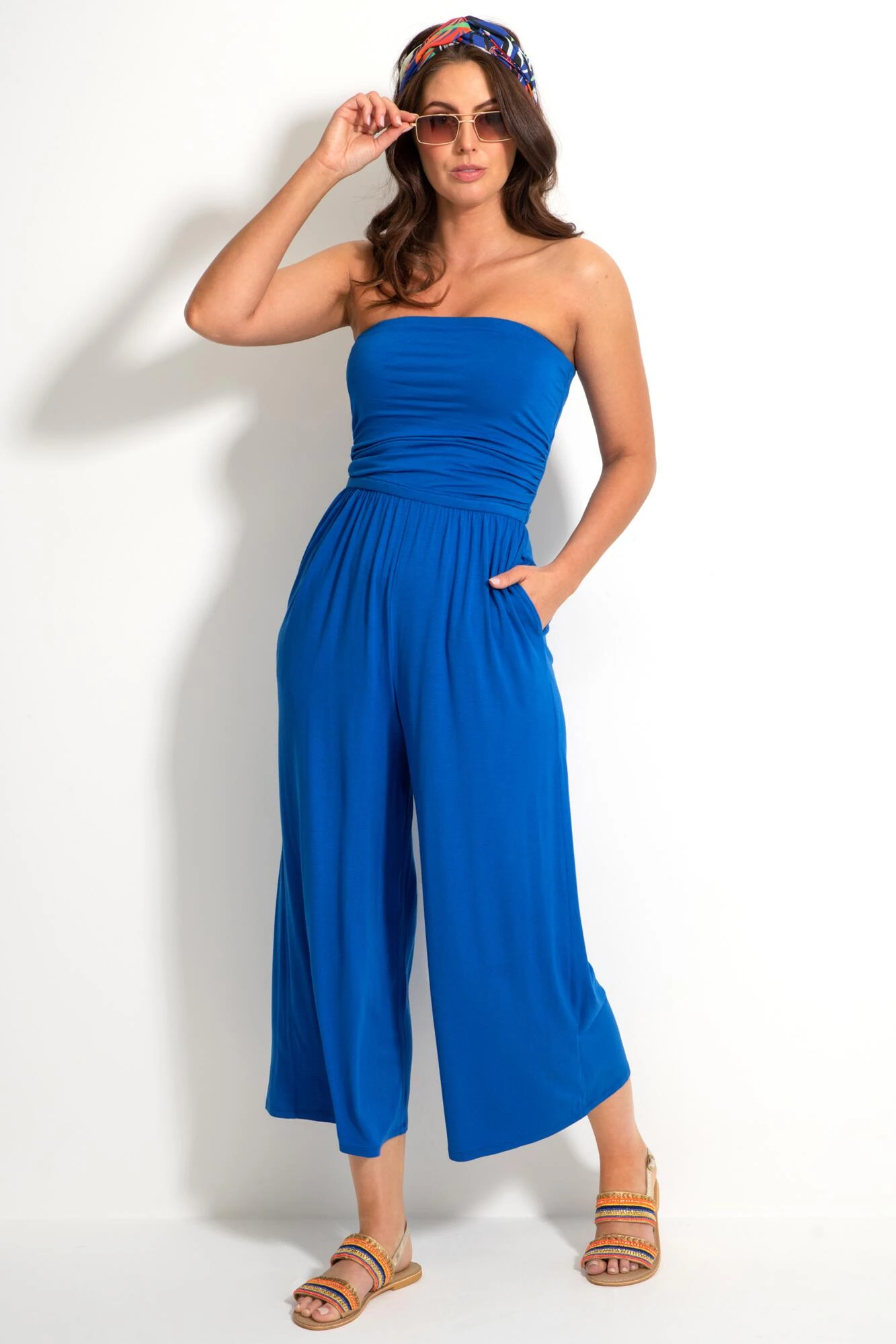 Looking for the perfect addition to your summer wardrobe? We’ve got it with this bandeau jumpsuit. Perfect for lounging by the pool or watching the sun set over an evening meal, this jumpsuit will made from a super soft and breathable jersey fabric will keep you supported and comfortable all day long. Including a flattering elasticated waist and ruching across the bust, this gorgeous bandeau jumpsuit will answer all your style dilemmas this summer.