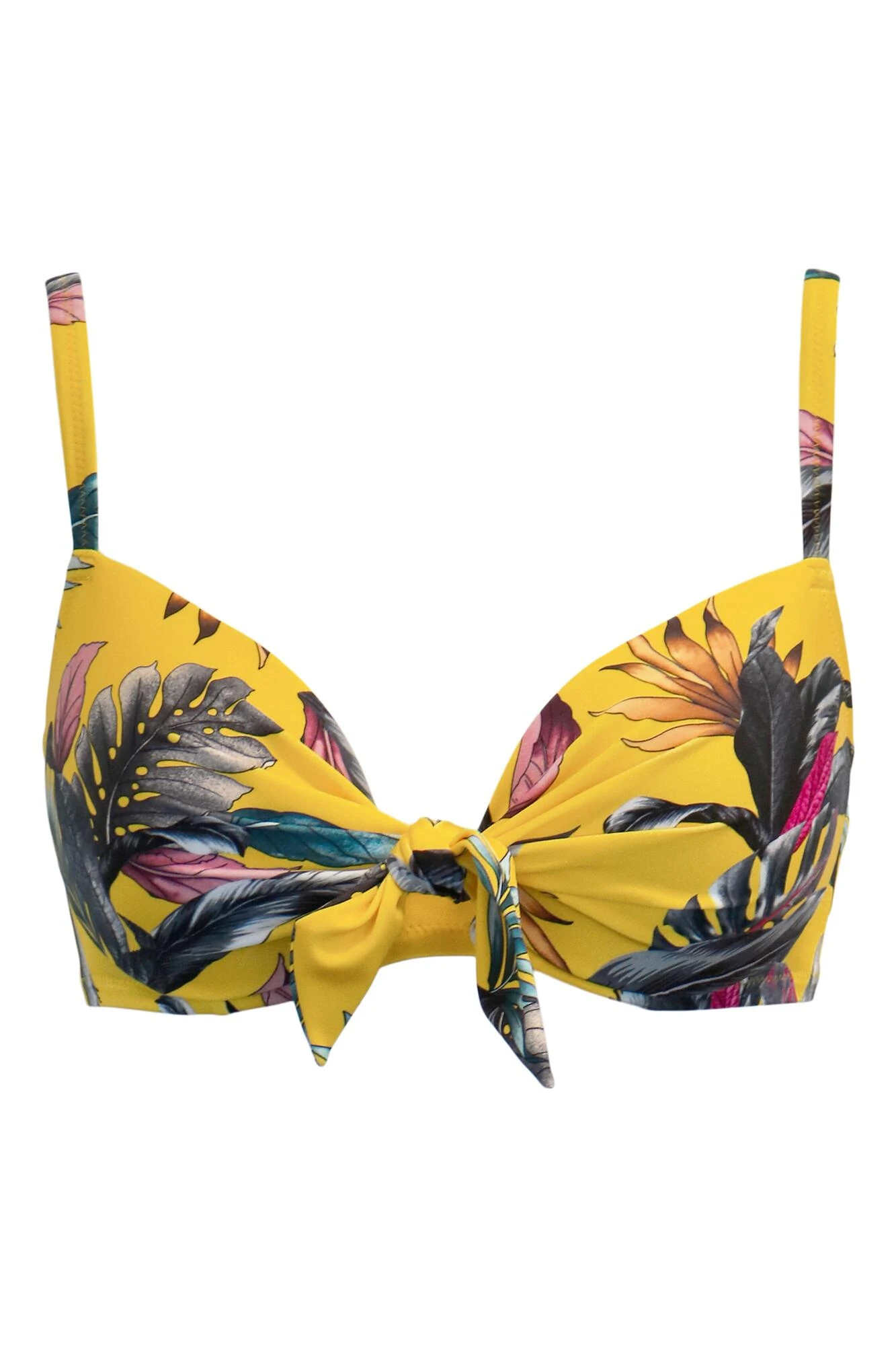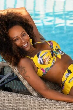 Introducing a new style this season, get set to soak up the sun in our Paradiso Front Tie Top. With underwired, lightly padded cups, this glam and stylish bikini features a ornate luxe print on a gorgeous shine fabric. With gathered cups that tie at the centre front, this gorgeous style will shape and support your curves to give you the ultimate silhouette. Wear with our matching Paradiso Brief to complete the look.