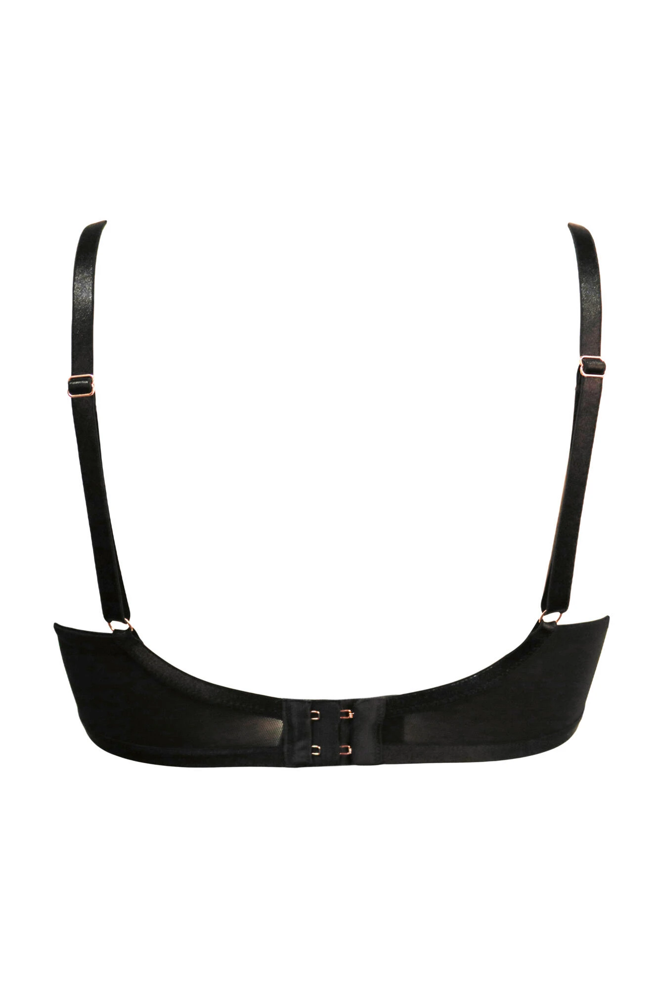 Step out in style with this sexy strapped padded bra. Adorned in beautiful embroidered mesh detailing, this underwired style with leave you looking and feeling amazing. With adjustable straps and rose gold hardware you’ll be supported and look gorgeous all day and night. Wear with the matching lingerie from the Roxie Collection to unleash your inner temptress.