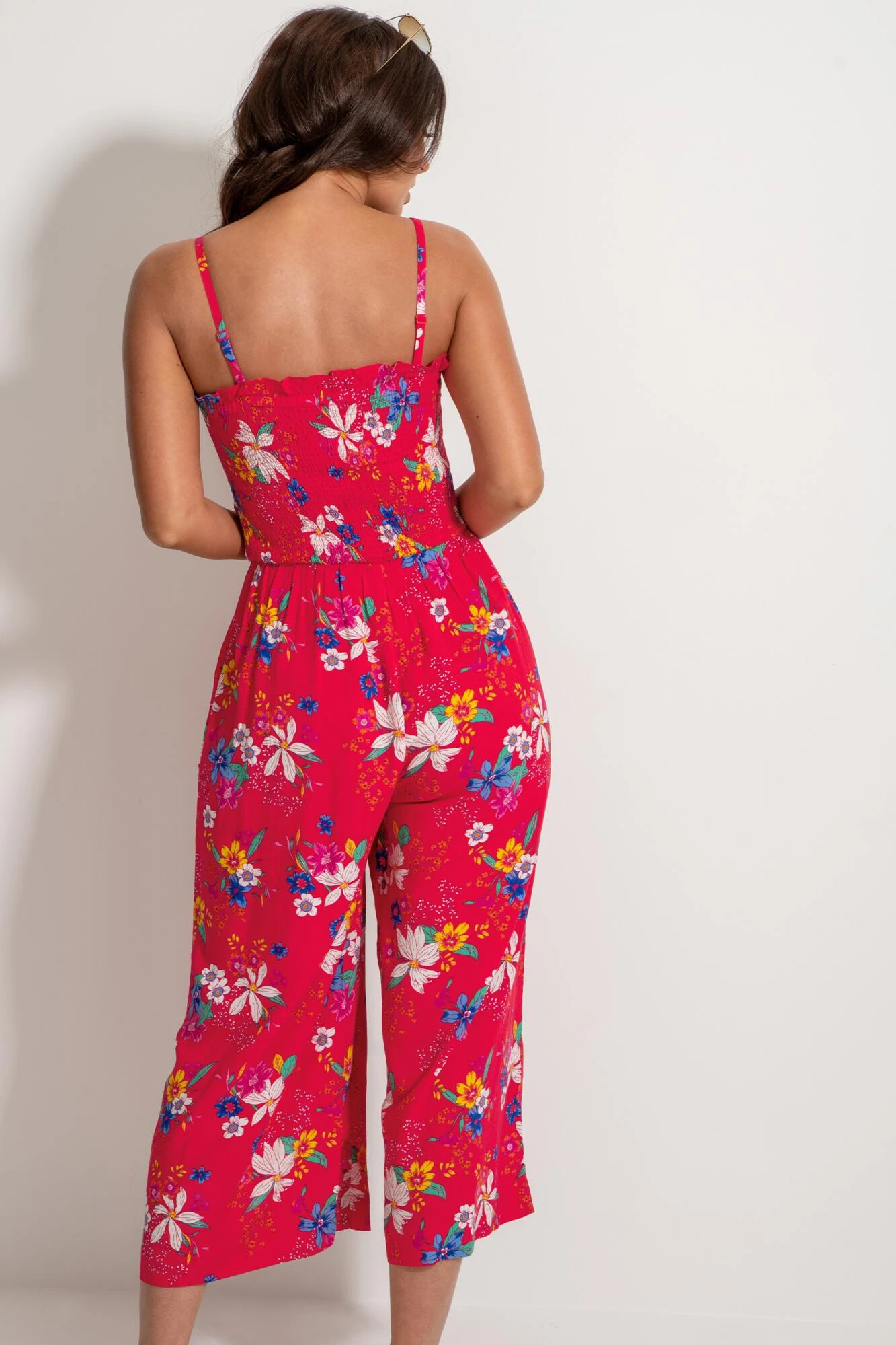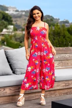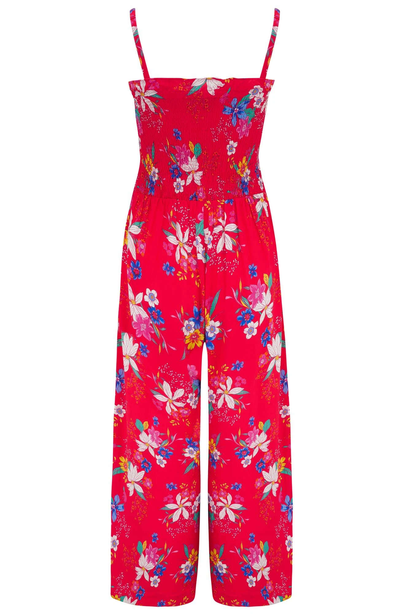 Jump start your new season wardrobe with our chic shirred Crop Leg Jumpsuit. This 70s inspired one piece is the perfect day-to-night style that you can dress with stiletto heels and a clutch bag, or go casual and rock with sliders and shades for on-trend transitional dressing. Featuring a gorgeous all over silhouette floral print, this style can be worn with or without straps for an ultra-versatile style.