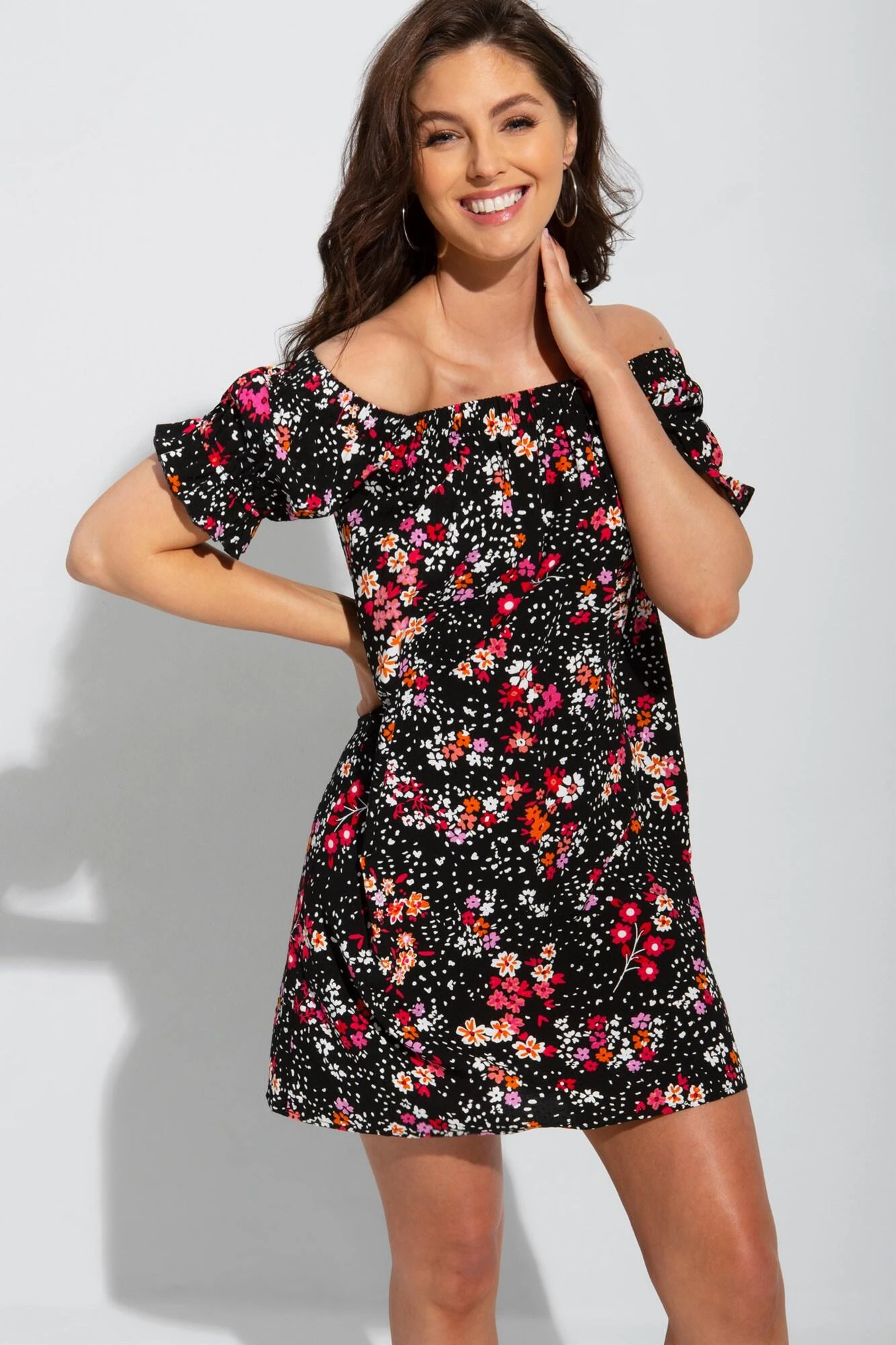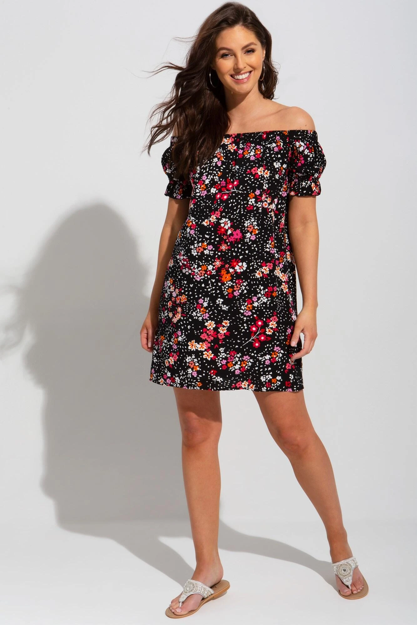 Already one of your favourites! Our Bardot Beach Dress is perfect to throw on over your swimwear. The off the shoulder elasticated bardot neckline with its cute puff sleeves makes it the perfect fit for every body! This dress is the perfect beach-to-bar style!